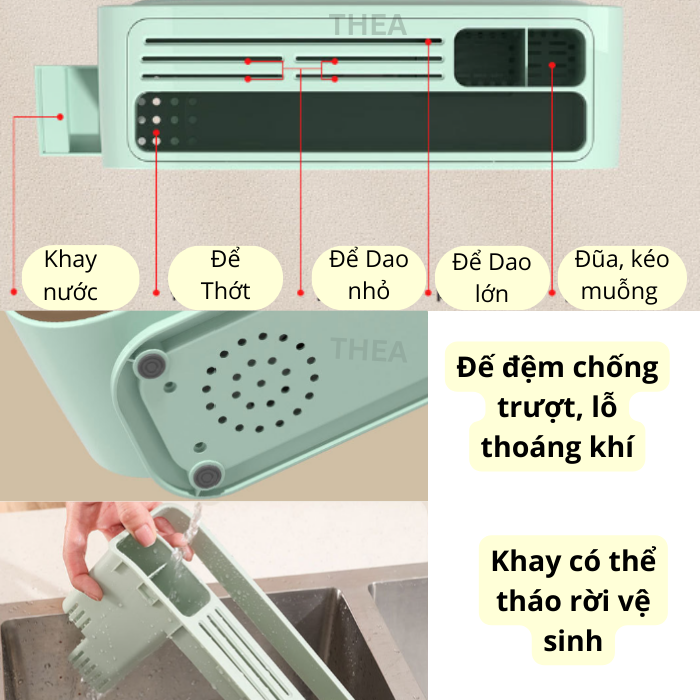 ☑️ Có thể dễ dàng tháo rời để vệ sinh, có lỗ thoát nước, và chân đế chống trượt.