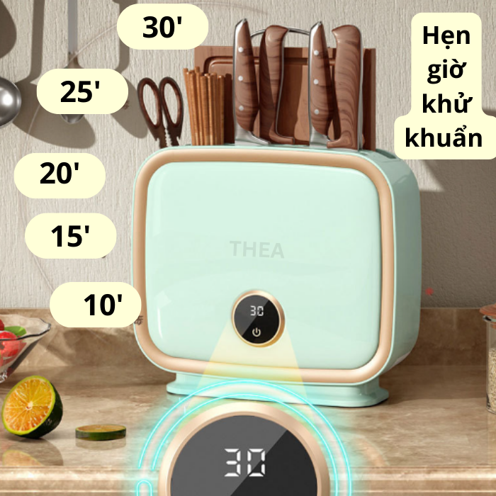 - Công dụng: sấy khô, diệt khuẩn bằng tia cực tím và bảo quản đựng dao thớt đũa kéo.