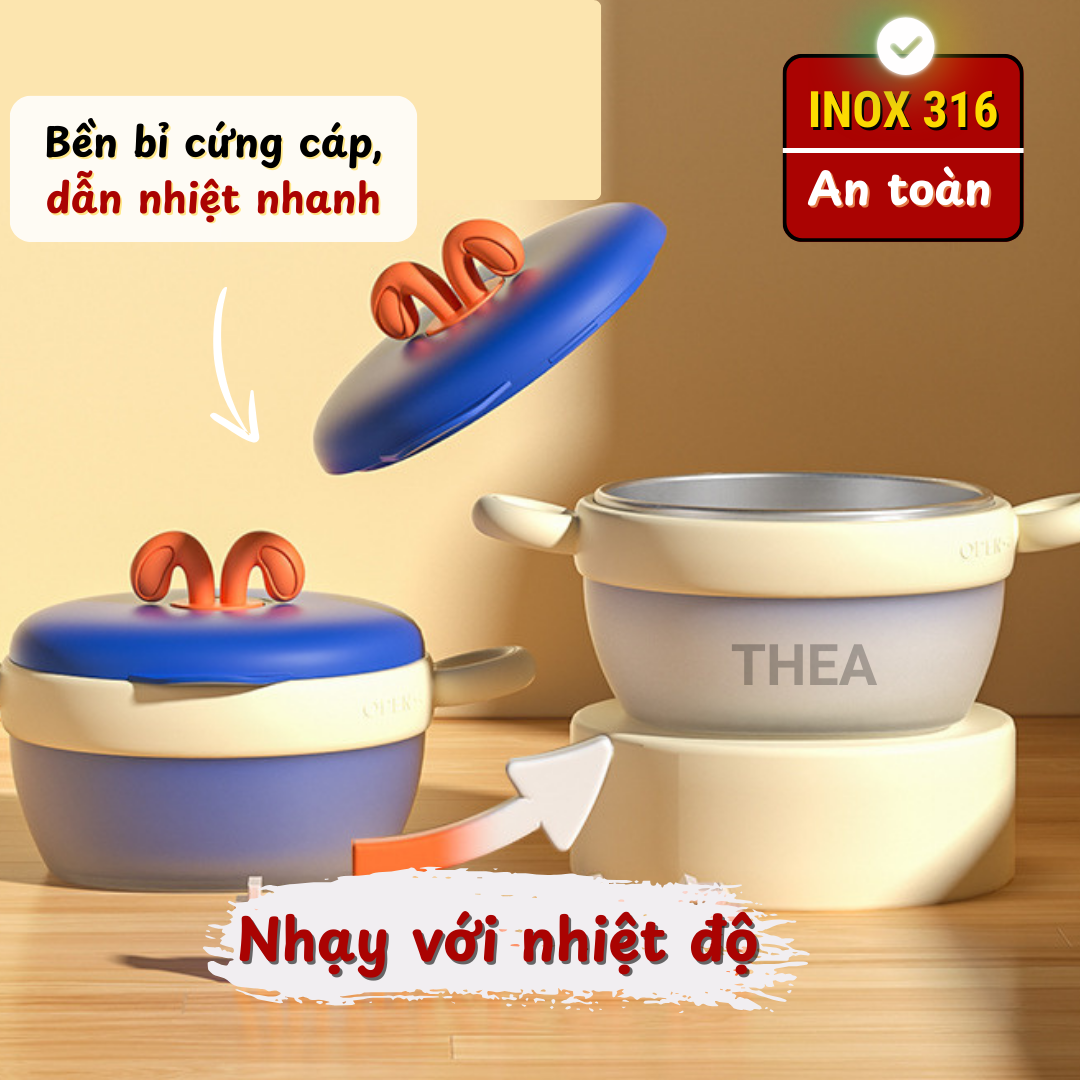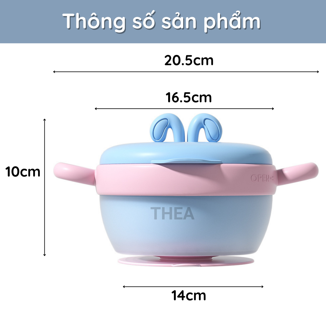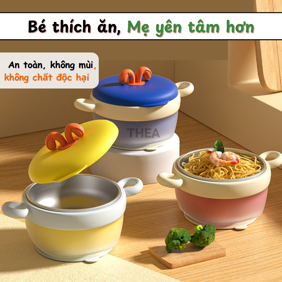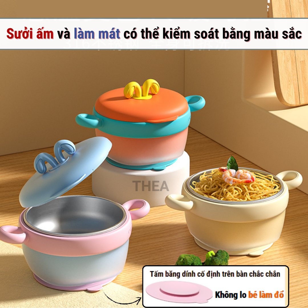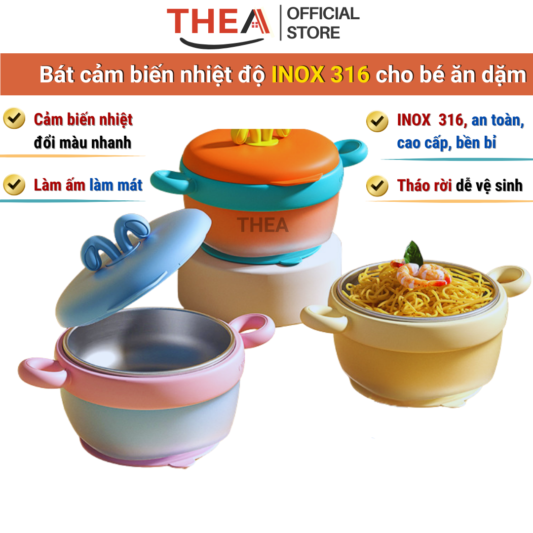 Bát ăn dặm cho bé, chén cho bé ăn dặm Inox 316 cao cấp giữ nhiệt và cảm biến nhiệt độ thông minh - THEA