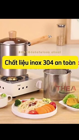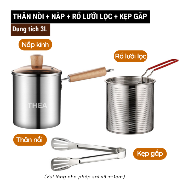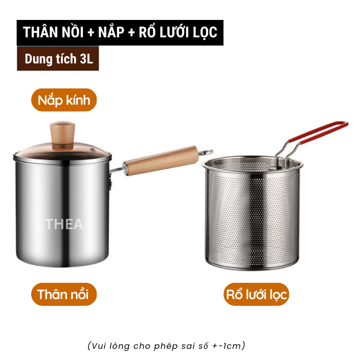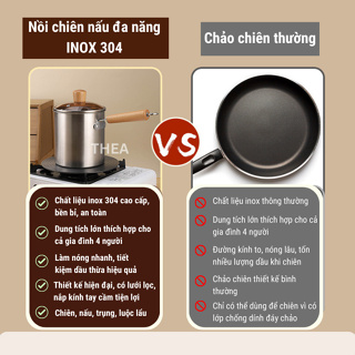 Nồi chiên nhúng ngập dầu đa năng mini [nâng cấp] 3L, chiên khoai tây, trụng bún, hủ tiếu, luộc, nấu bằng inox 304 bền bỉ - THEA
