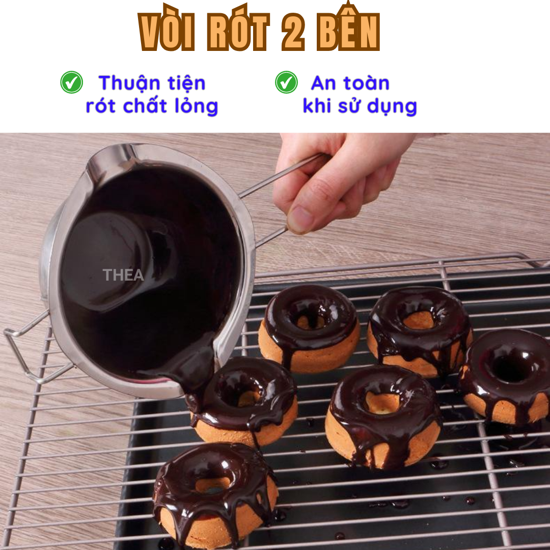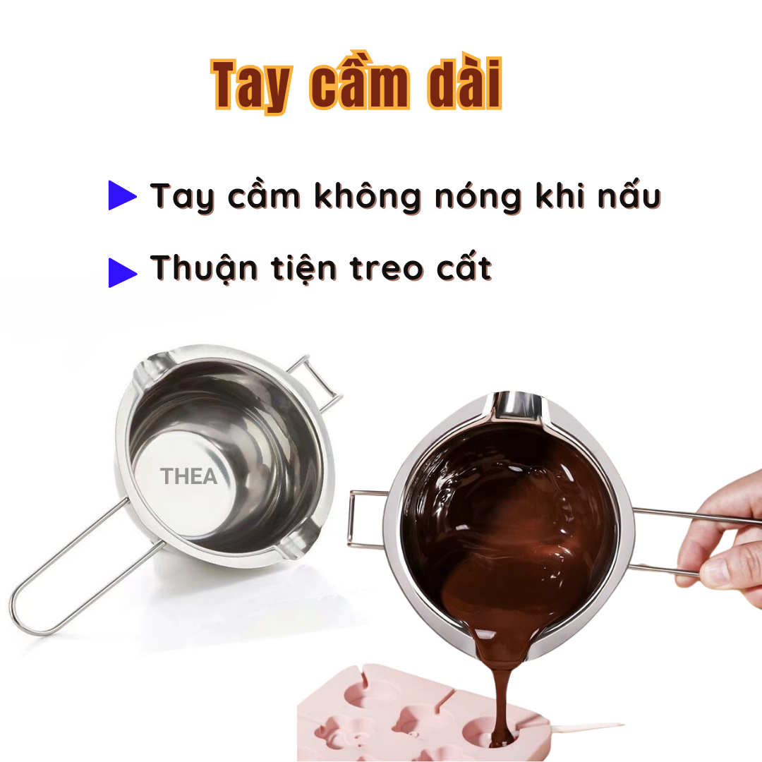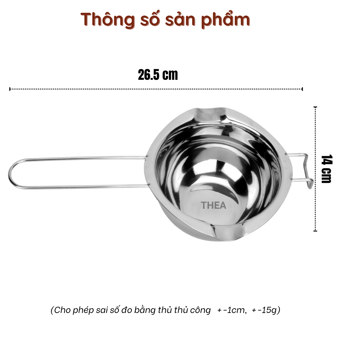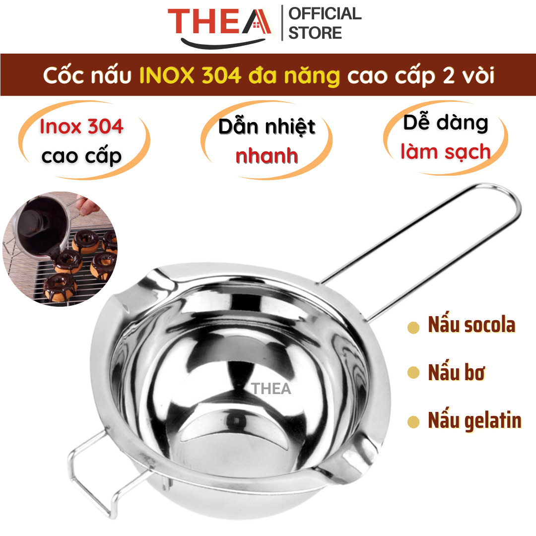 Nồi nấu inox, cốc inox 304 đun nấu sáp, socola, bơ, gelatin tan chảy trên bếp từ, bếp gốm điện - THEA