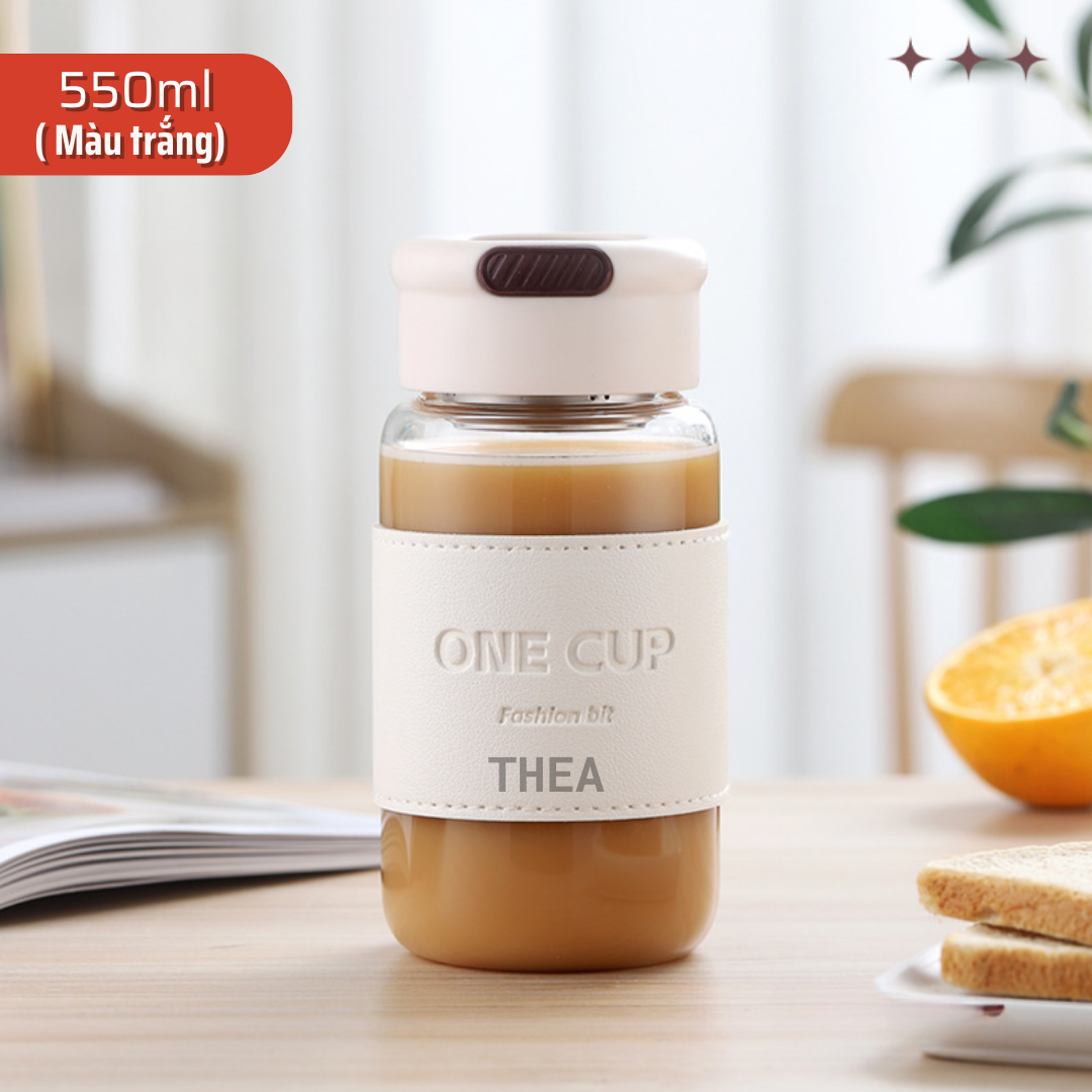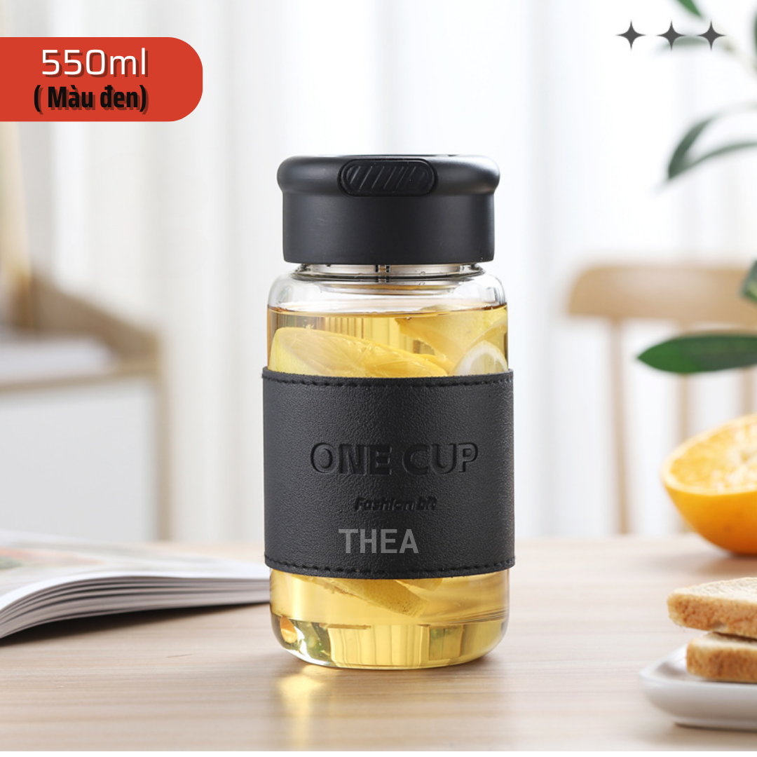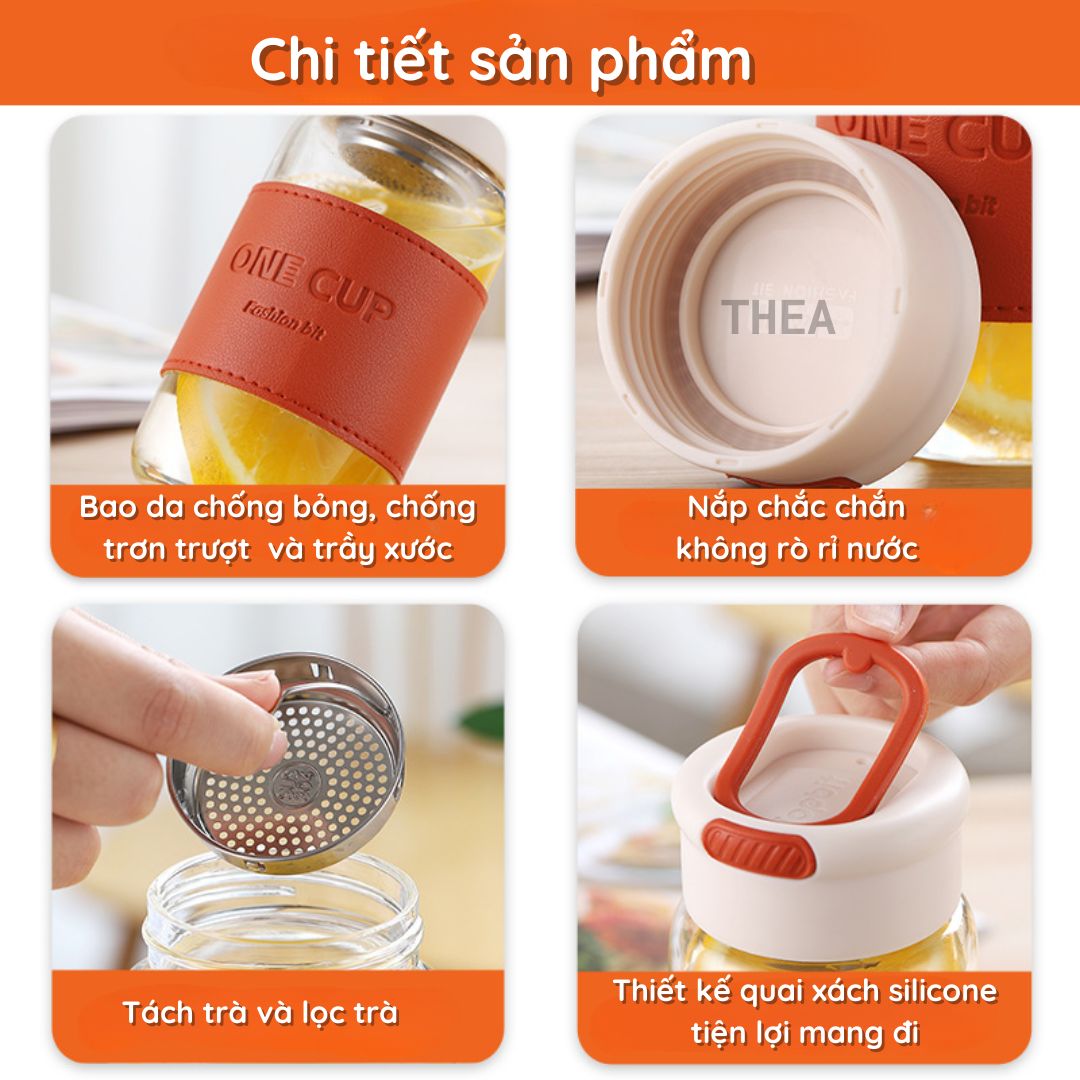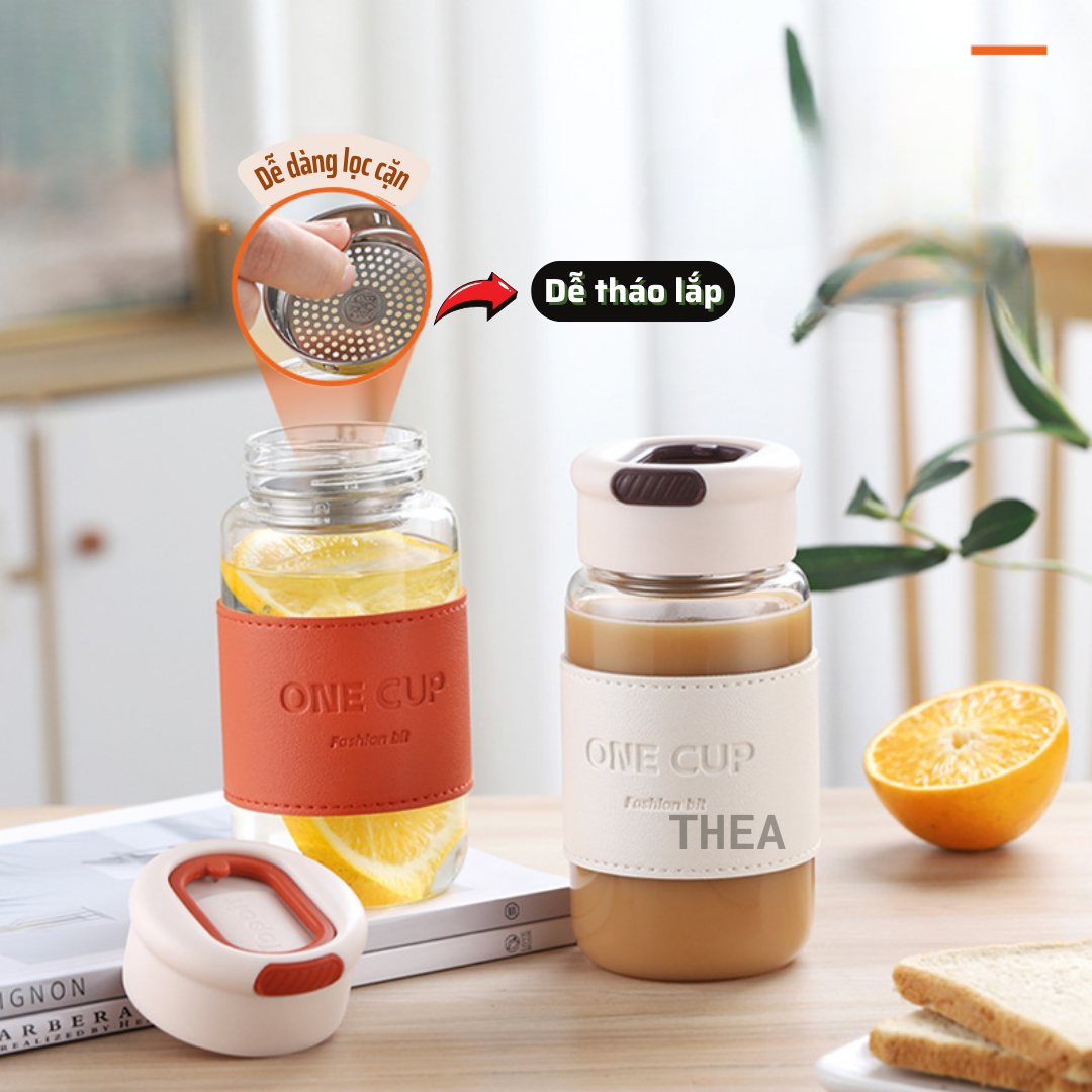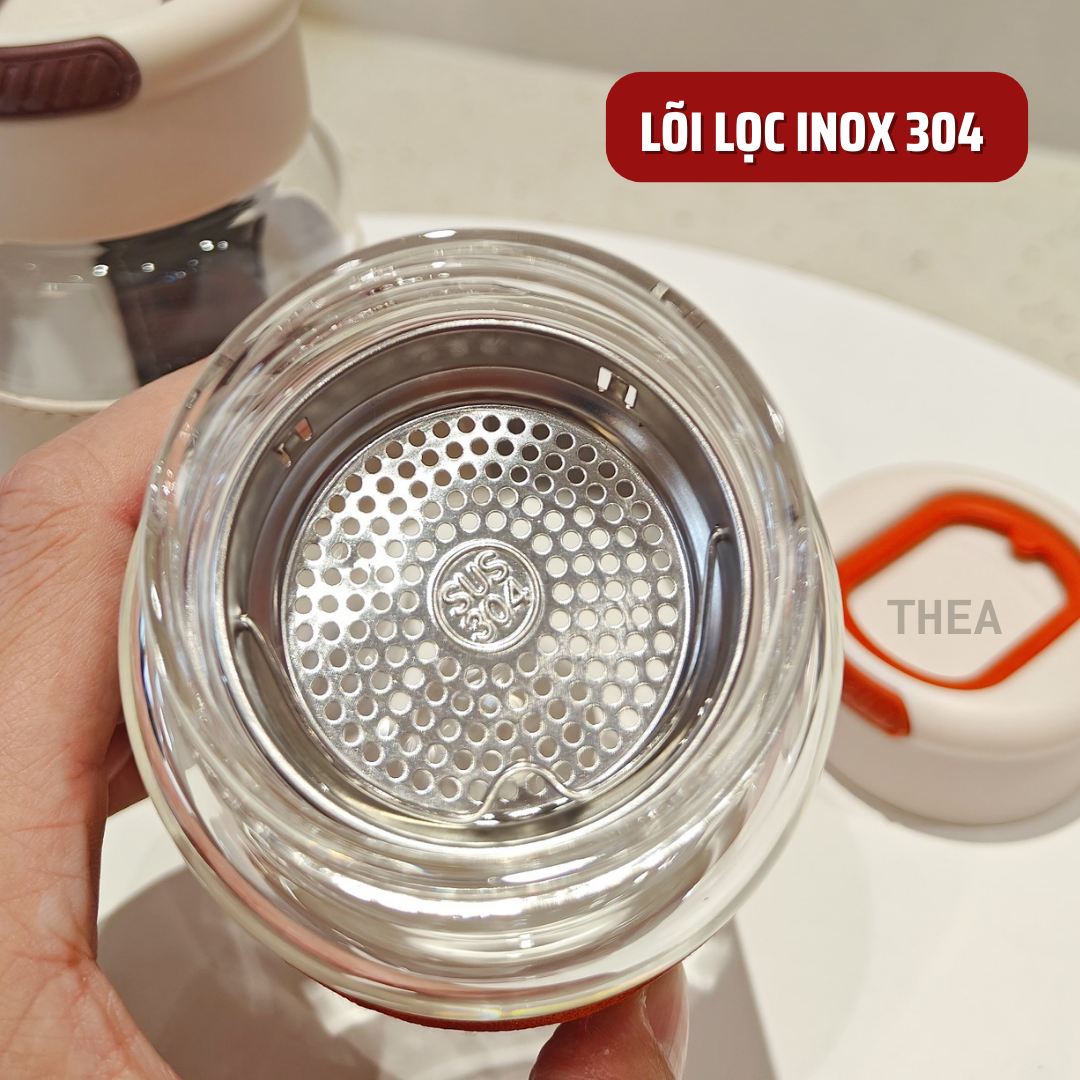 Bình đựng nước thủy tinh, cốc thủy tinh đẹp, chịu nhiệt đựng trà, nước ép trái cây, có lõi lọc inox 304 - THEA