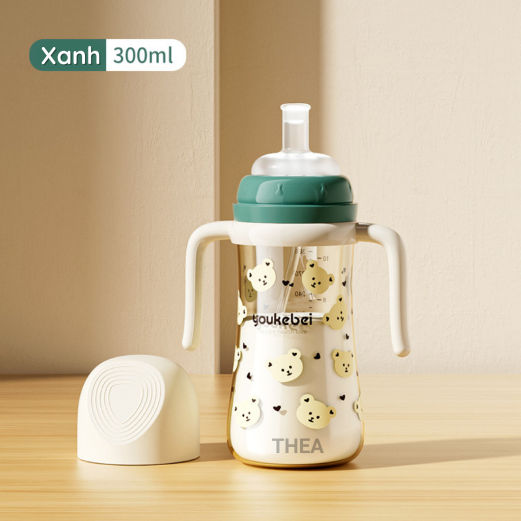 - Kích thước: Dung tích 300ml, đủ lớn để đựng nước hoặc sữa cho bé suốt cả ngày.