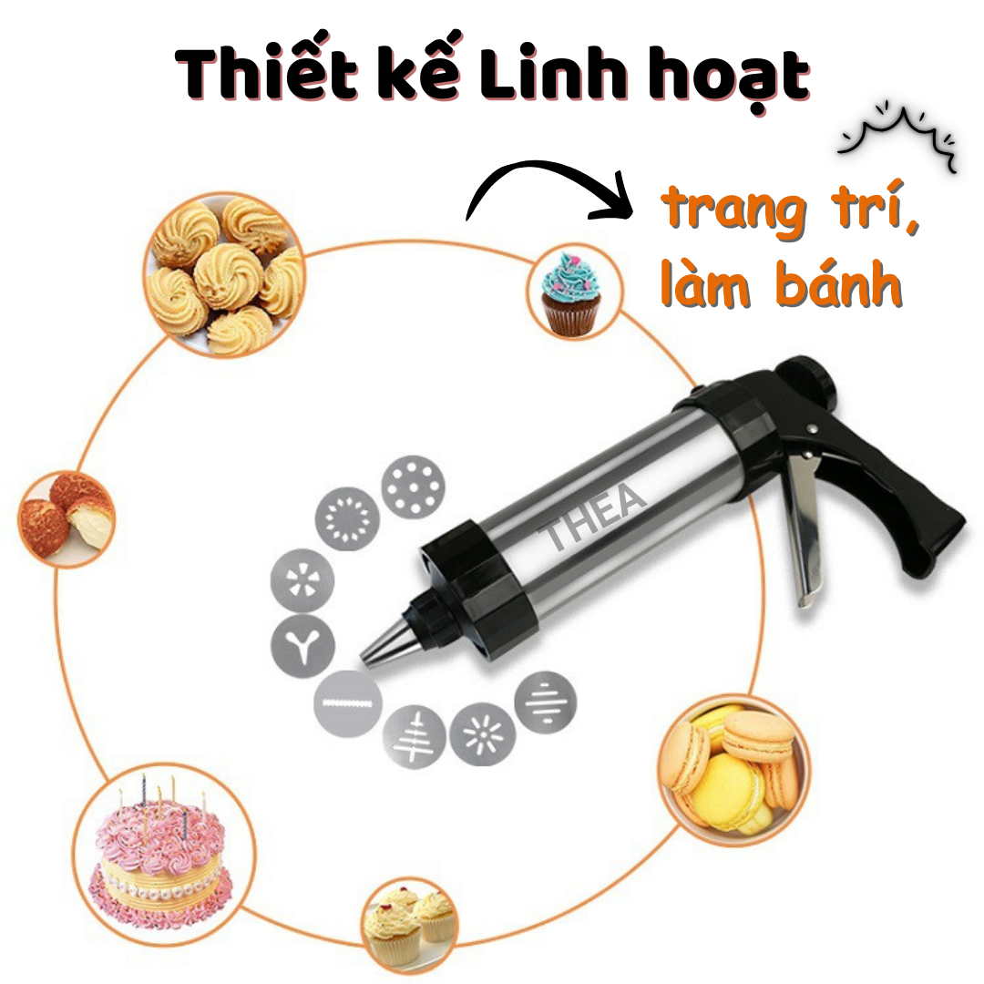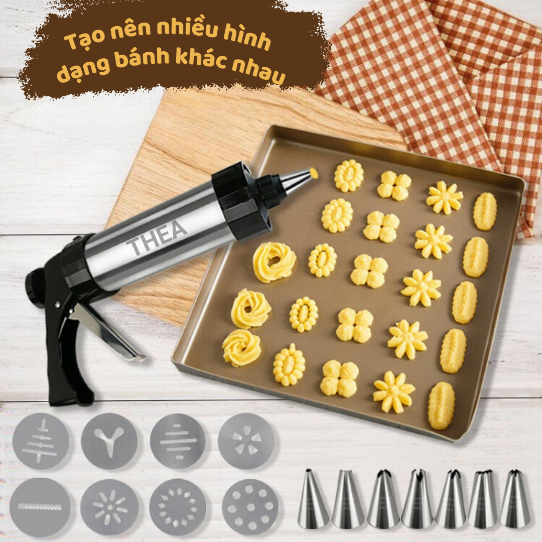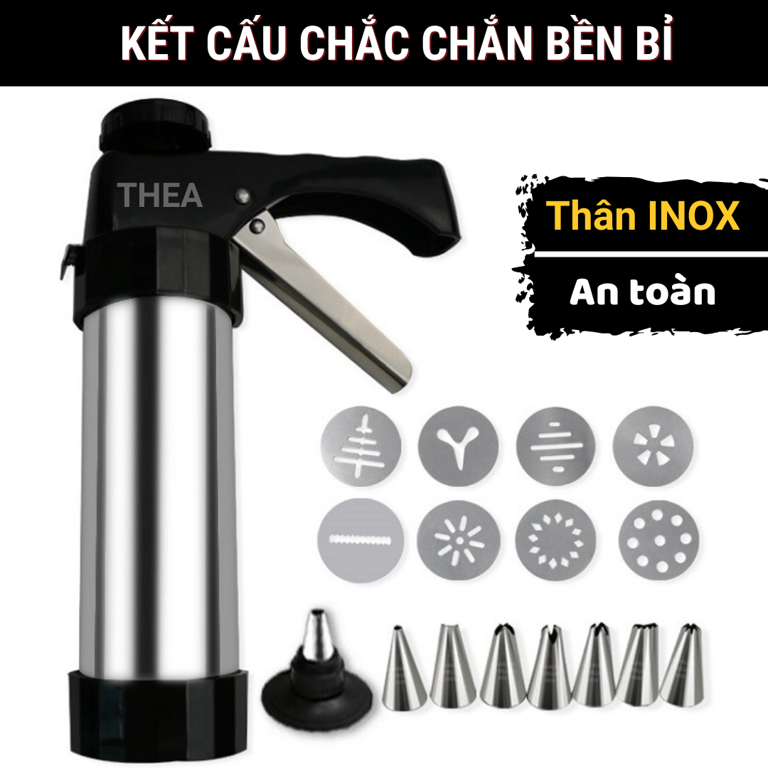 Bộ khuôn nhấn làm bánh quy tạo hình và bộ đui bắt kem, máy làm bánh quy Inox chắc chắn, an toàn kèm đầu bắt kem trang trí - THEA
