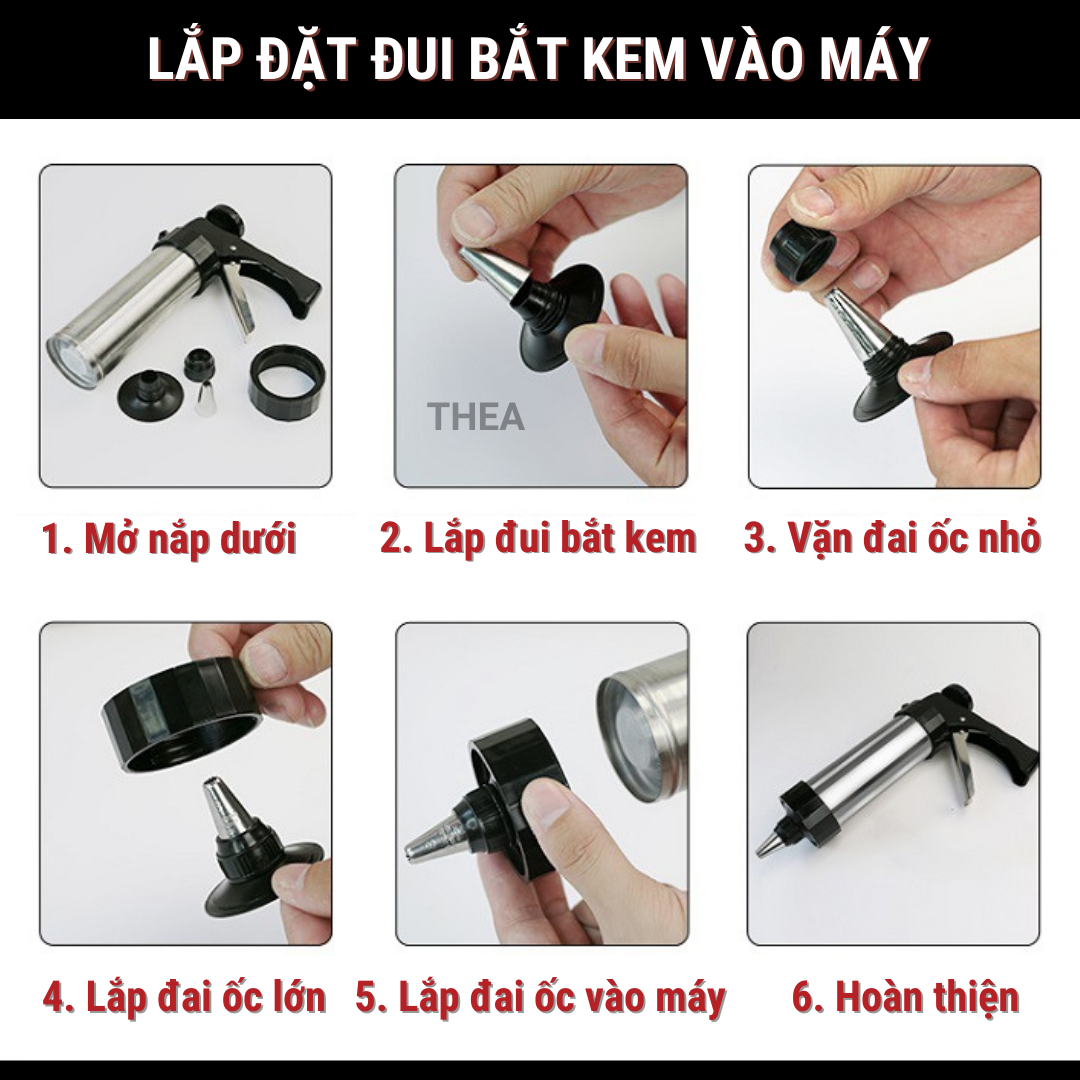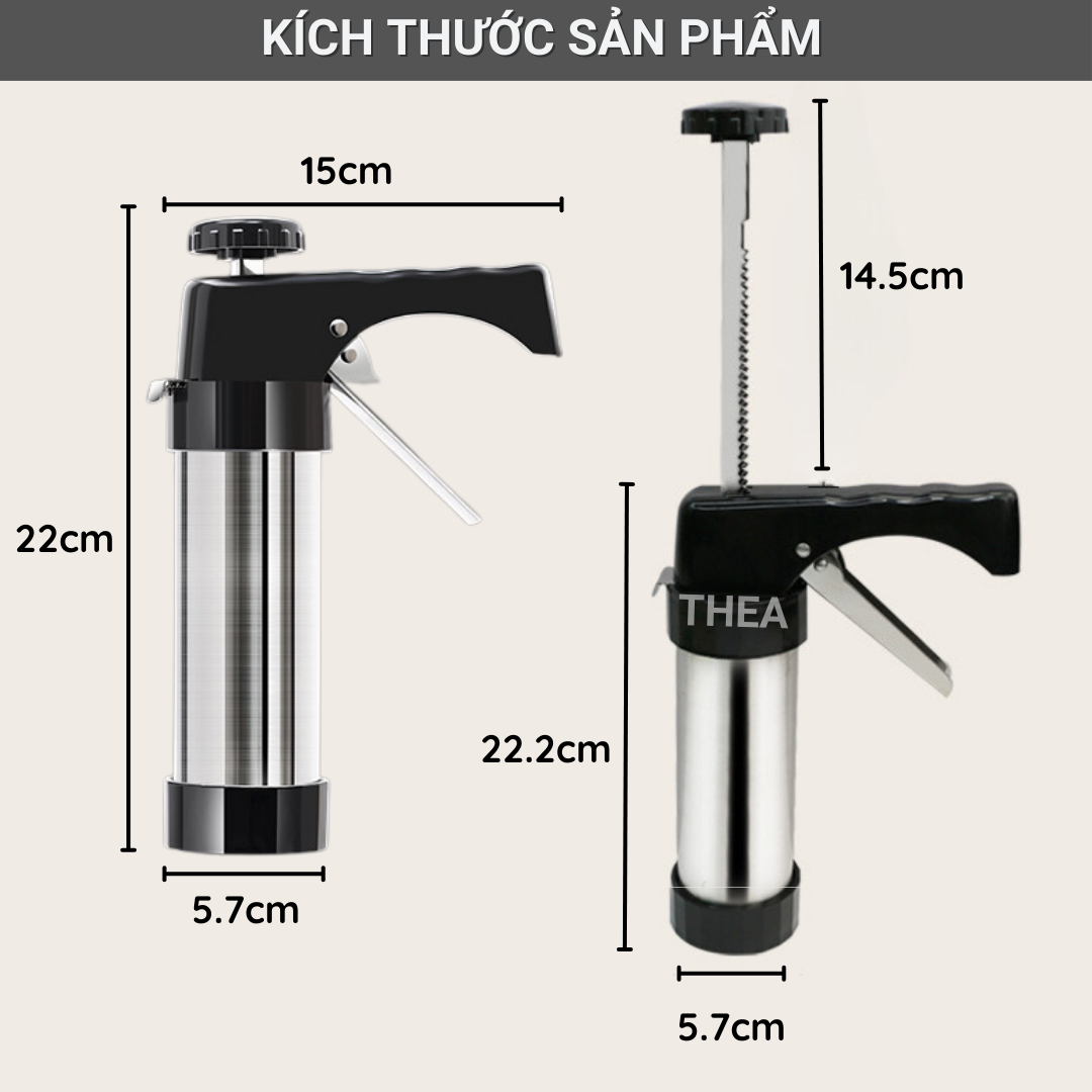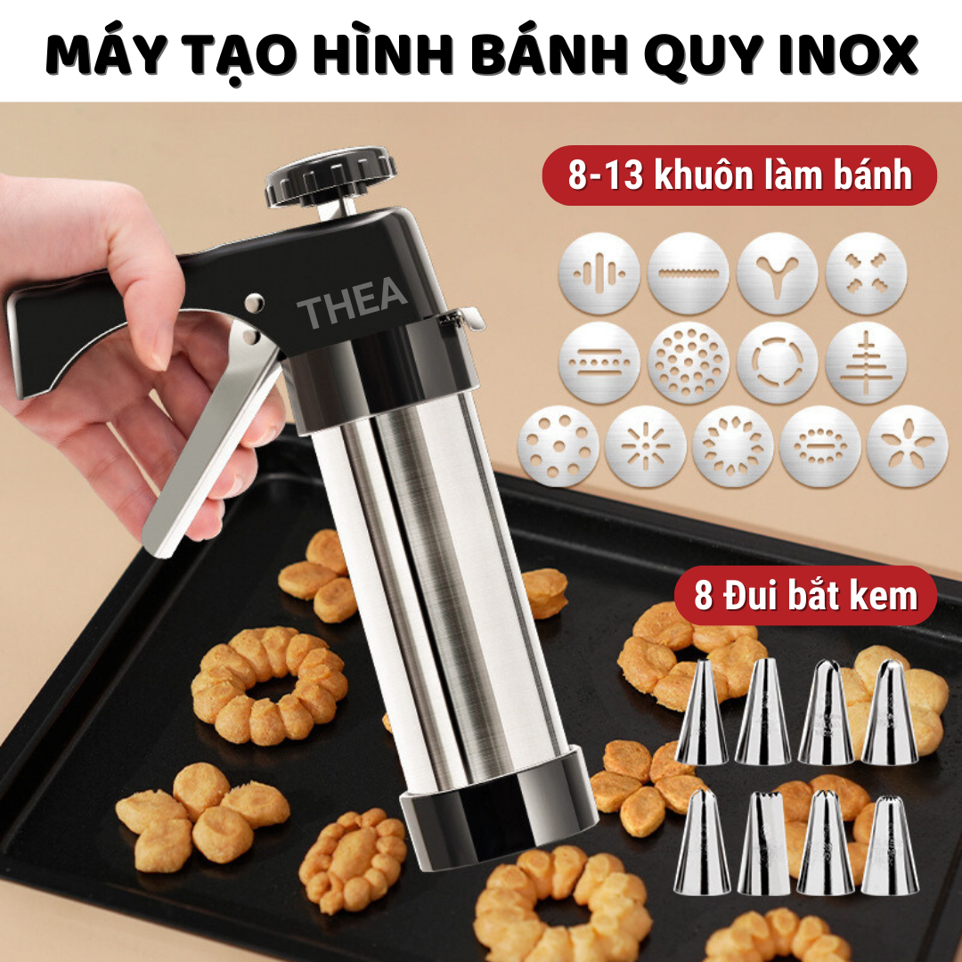 Bộ khuôn nhấn làm bánh quy tạo hình và bộ đui bắt kem, máy làm bánh quy Inox chắc chắn, an toàn kèm đầu bắt kem trang trí - THEA