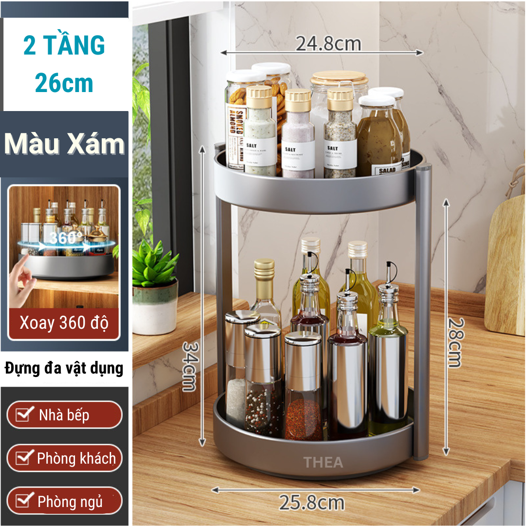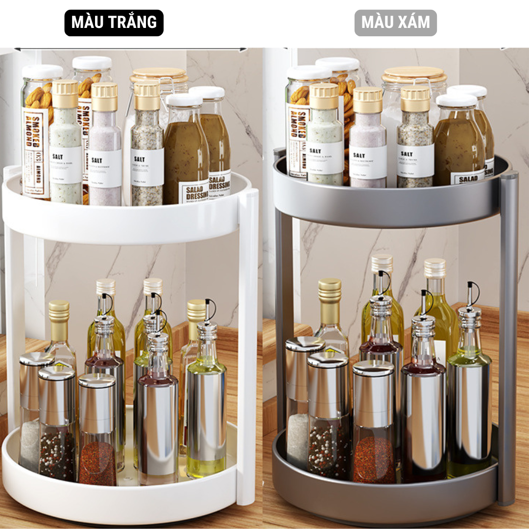 Kệ đựng gia vị tròn nhà bếp 2-3 tầng đa năng xoay 360 độ, giá để gia vị nhà bếp thông minh, kệ đựng mĩ phẩm, để đồ tiết kiệm không gian - THEA