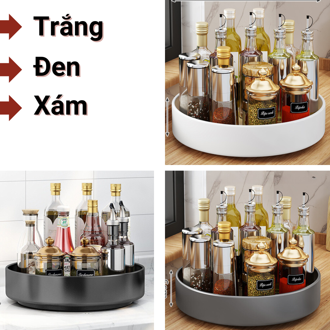 Tên sản phẩm: Kệ đựng gia vị tròn nhà bếp 2-3 tầng xoay 360 độ, giá kệ đa năng thông minh để gia vị, mĩ phẩm, để đồ tiết kiệm không gian