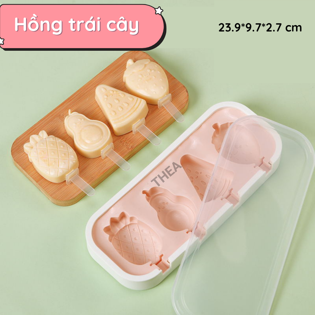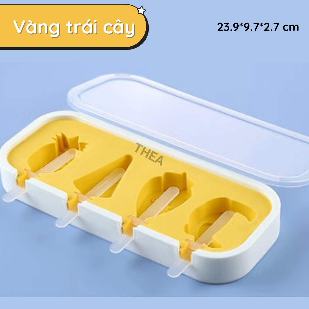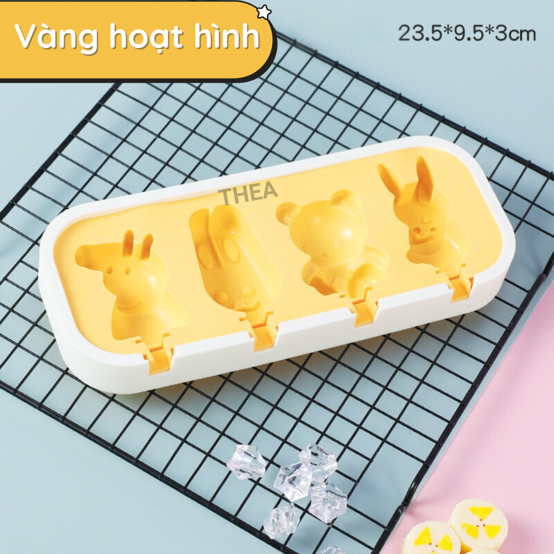 Khuôn làm kem que silicone có nắp, khay làm kem que hình thú, trái cây đông lạnh tại nhà giá rẻ, bộ khuôn làm thạch, kẹo dẻo - THEA
