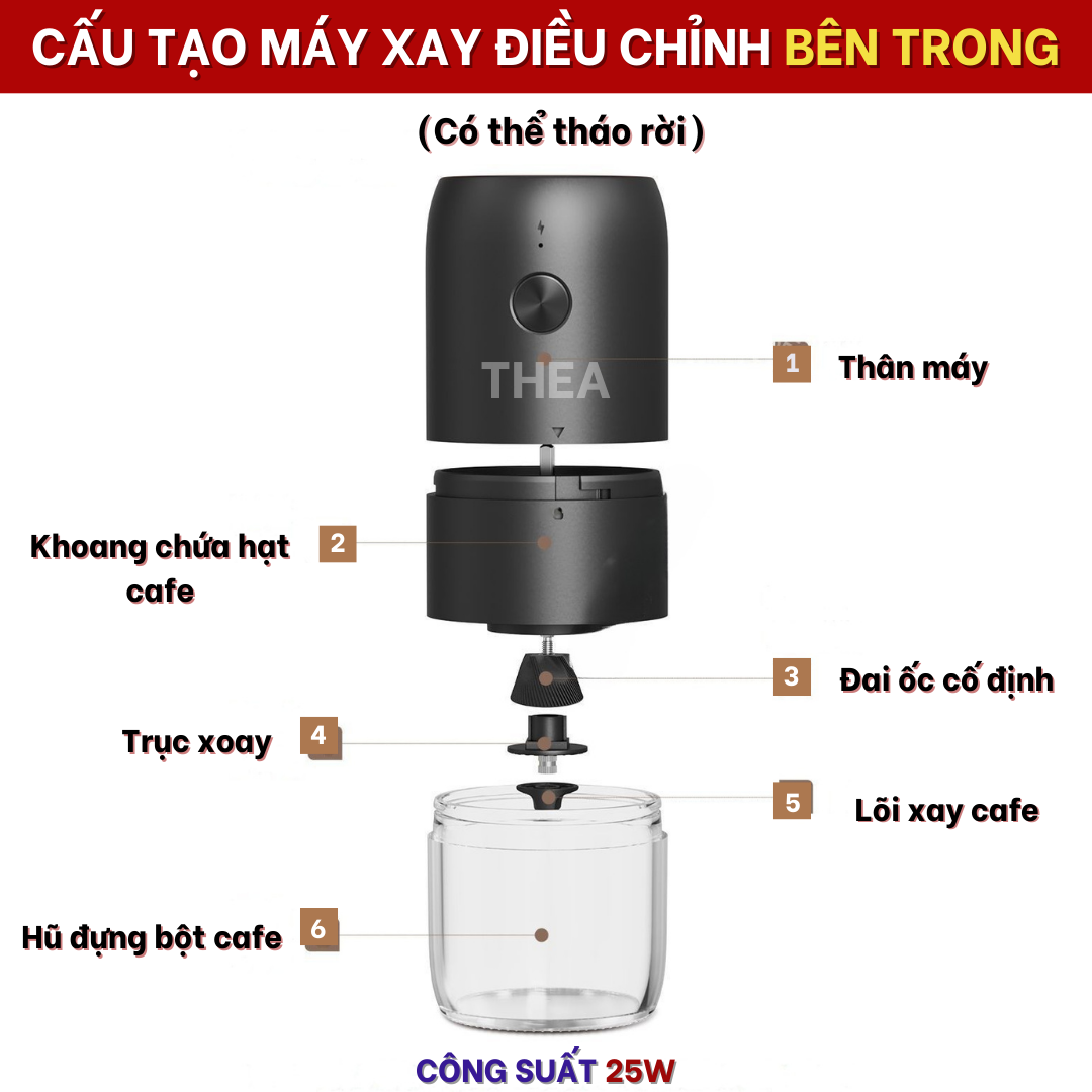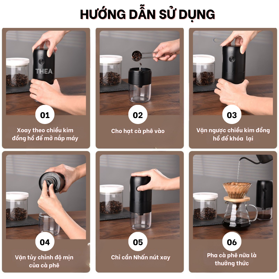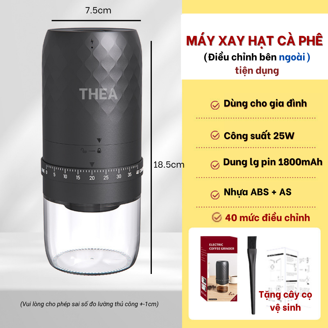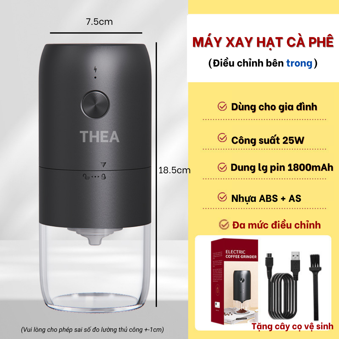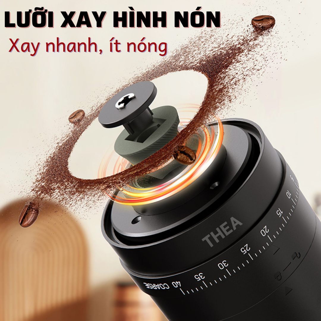 Máy xay hạt cà phê cầm tay mini tự động cao cấp có thể điều chỉnh độ mịn bằng tay dễ dàng - THEA