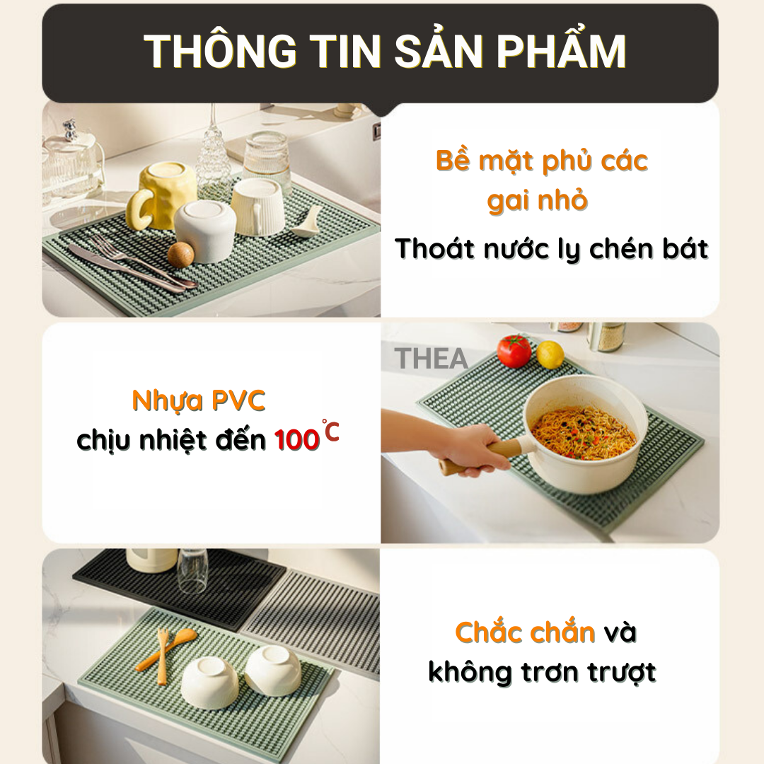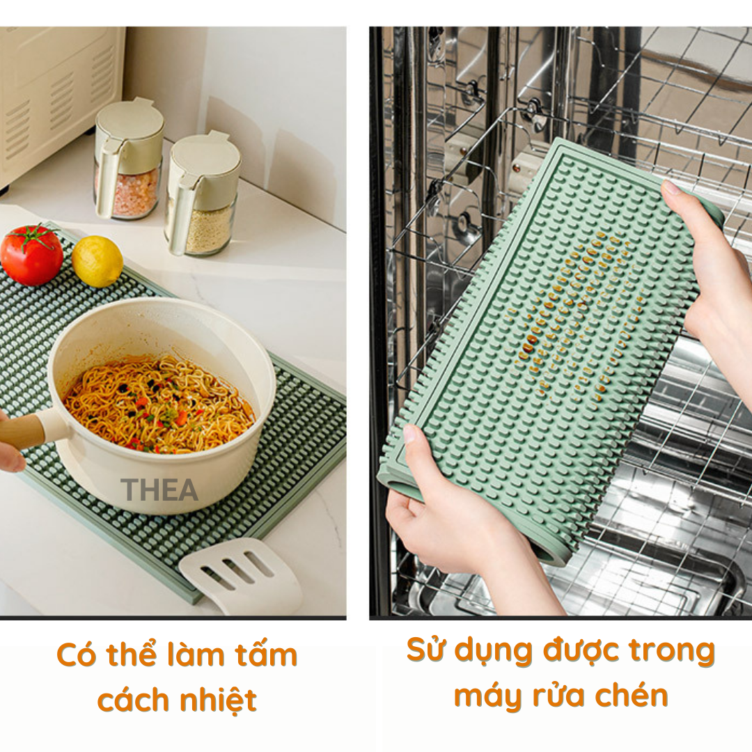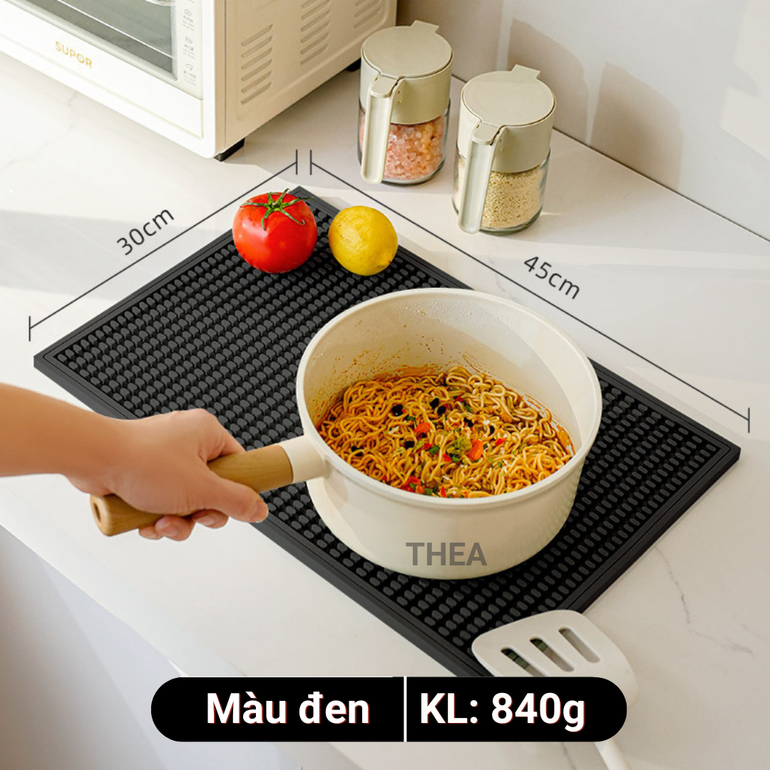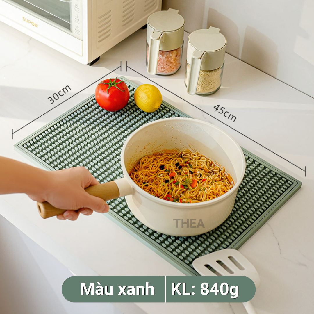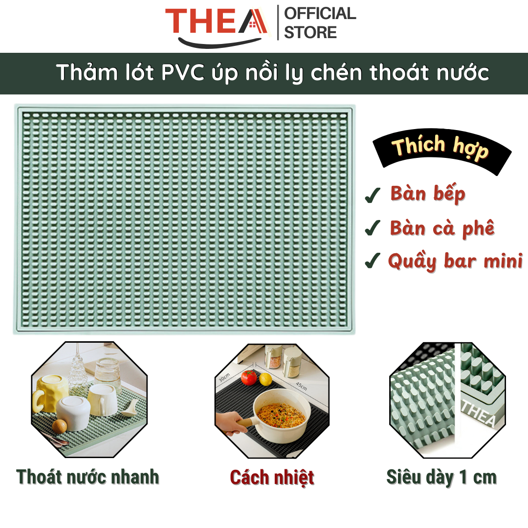 Tấm lót nồi cách nhiệt, thảm lót PVC chống nóng, úp ly, cốc, chén bát dĩa ráo nước thích hợp bàn bếp, bàn cà phê, quầy bar - THEA