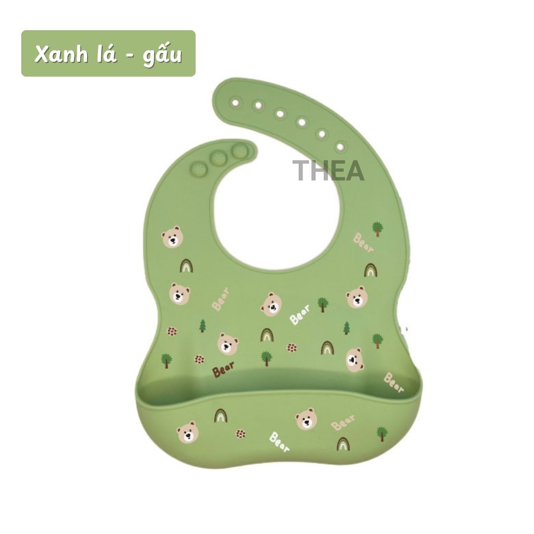 Yếm ăn dặm cho bé trai và bé gái 100 % silicone không mùi an toàn có máng cho bé từ 10 tháng tuổi ngăn rơi vãi thức ăn - THEA