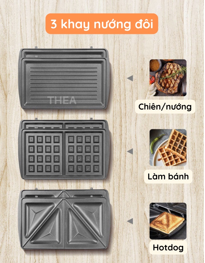 - Đa dạng các bộ khay nướng thay thế cho phép chuẩn bị nhiều loại bánh và đồ ăn sáng đa dạng