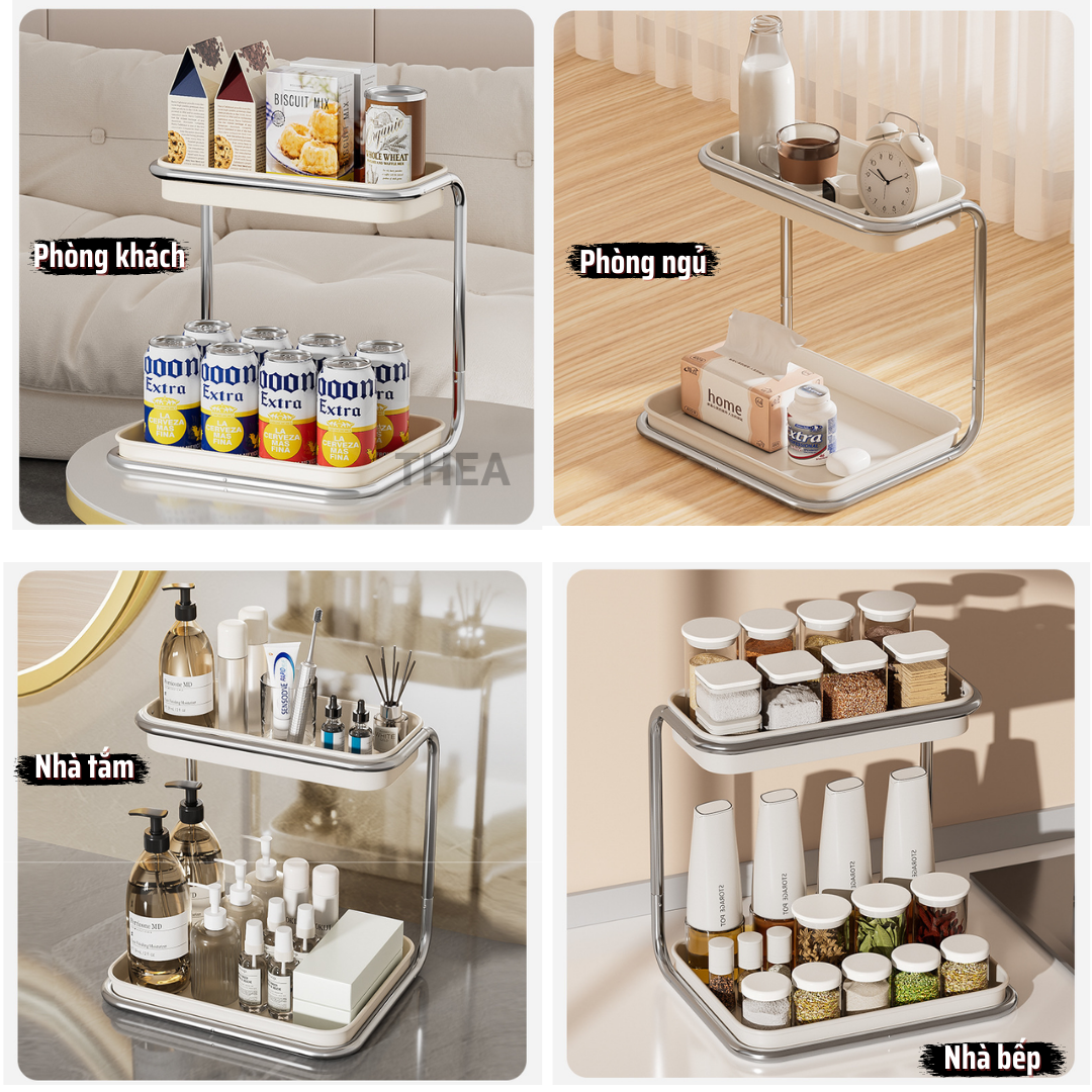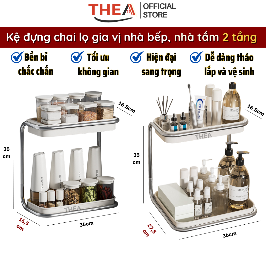 Kệ đựng gia vị nhà bếp đa năng 2 tầng, giá để gia vị, giá để đồ nhà tắm, phòng ngủ, bàn làm việc chắc chắn - THEA